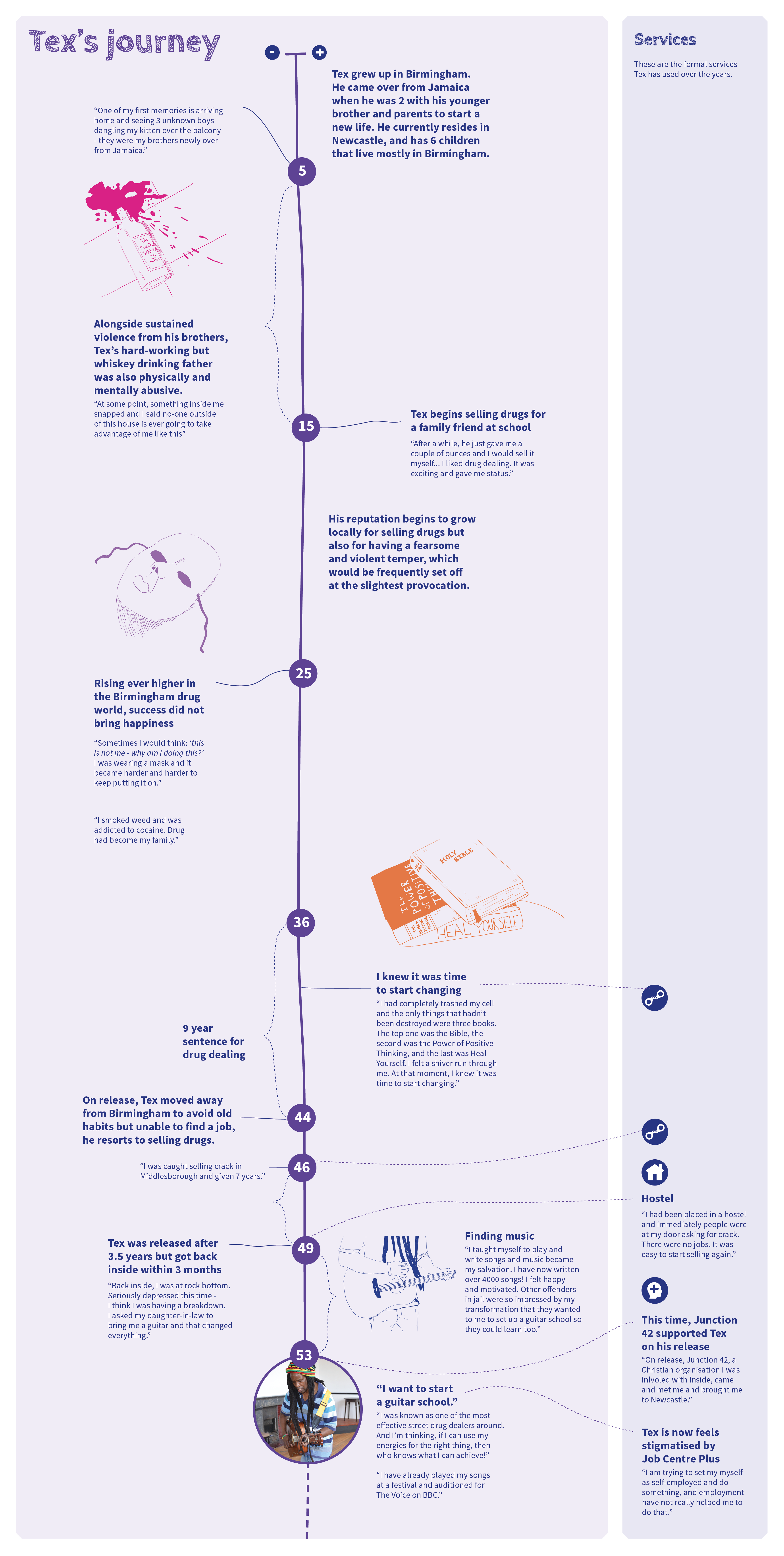 Here is Tex’s interpretation of what a better system can do for people: instead of only seeing one direction for them, services can take measured risks with the individual, by supporting them to find their own way to a good life.